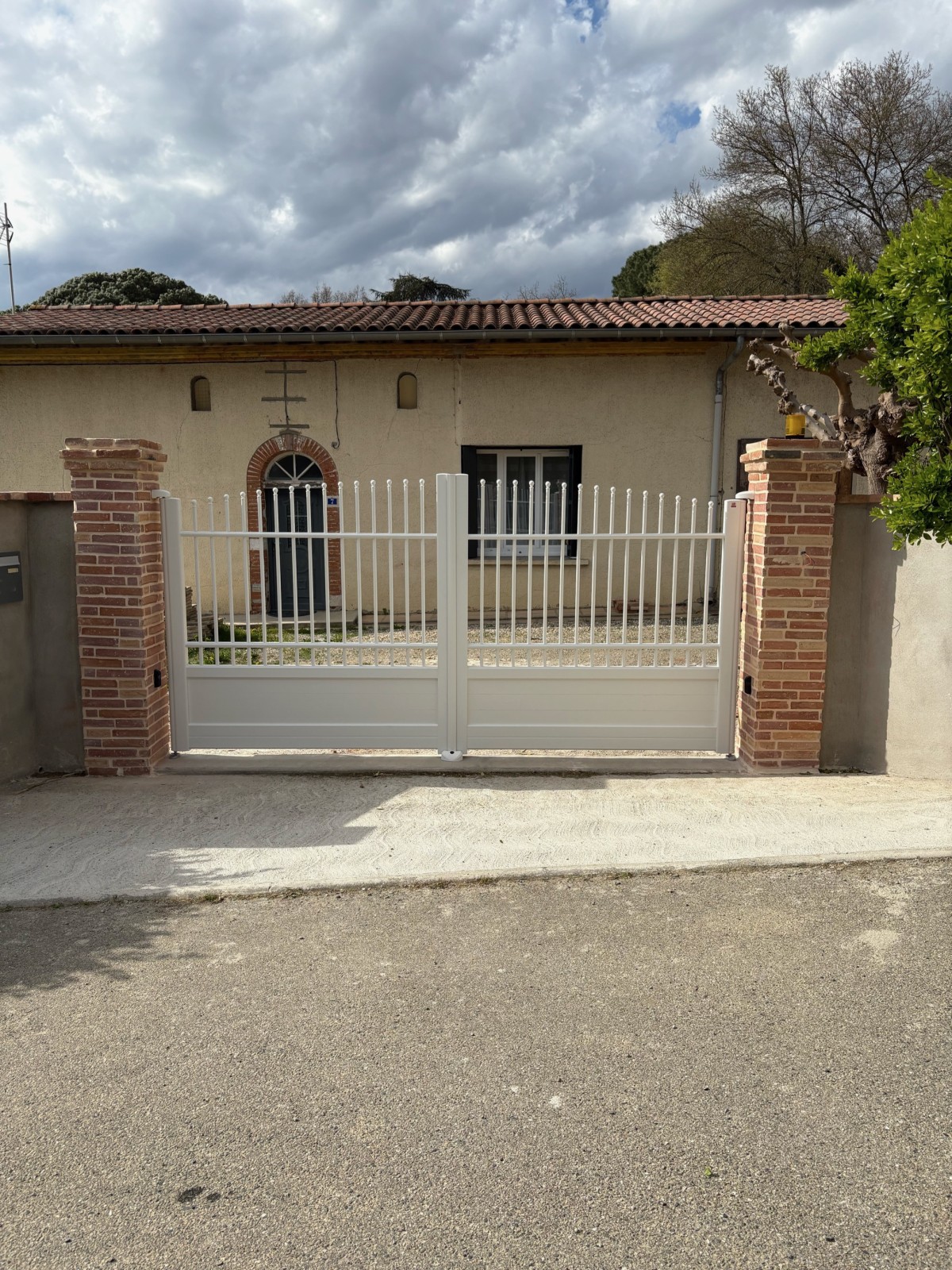 La motorisation Beninca, reconnue pour sa robustesse, permet une ouverture et une fermeture fluides, tout en sécurisant votre maison. L’aluminium blanc assure légèreté, résistance aux intempéries et faible entretien, tout en offrant un rendu moderne et élégant. Chaque portail est fabriqué sur-mesure, avec possibilité de personnaliser la couleur, la taille et la finition des vantaux. Notre équipe locale assure un accompagnement complet : étude de votre projet, conseil sur le modèle et les options de motorisation, installation professionnelle et suivi après pose. Ce portail battant allie esthétisme, sécurité et praticité, tout en s’intégrant harmonieusement à l’entrée et à la façade de votre maison.